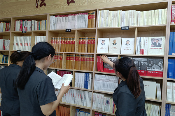 干警閱覽室設(shè)立的“習(xí)近平專(zhuān)著書(shū)柜”中所展示的圖書(shū),包括習(xí)近平總書(shū)記在正定、在浙江采訪實(shí)錄以及《習(xí)近平的七年知青歲月》中提及的書(shū)籍。習(xí)近平總書(shū)記專(zhuān)著書(shū)籍為廣大黨員、干部深入學(xué)習(xí)領(lǐng)會(huì)習(xí)近平新時(shí)代中國(guó)特色社會(huì)主義思想提供了重要參考。