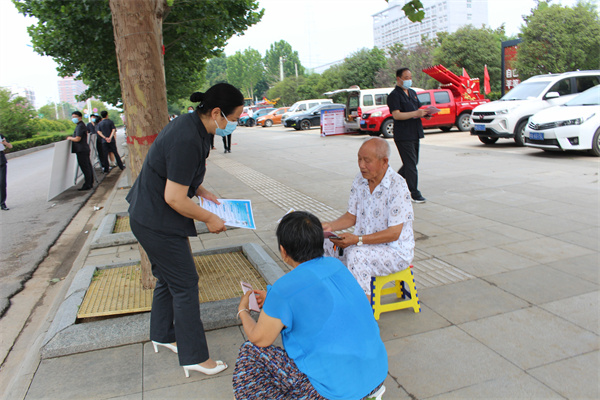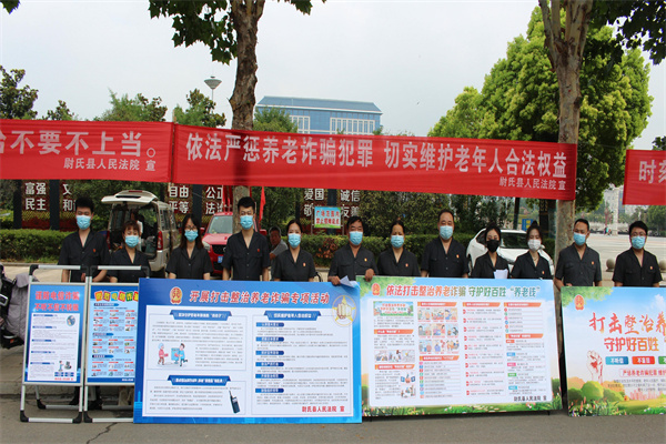 為了進(jìn)一步推動(dòng)全國整治養(yǎng)老詐騙專項(xiàng)行動(dòng),提升老年人的識(shí)騙防騙能力,守護(hù)好老人手中的“錢袋子”,2022年7月4日,開封市尉氏縣人民法院刑事審判庭全體干警來到人民廣場(chǎng),通過懸掛橫幅、發(fā)放宣傳頁、布置展板面等方式開展了以“預(yù)防養(yǎng)老詐騙,切實(shí)維護(hù)好老人權(quán)益”為主題的宣傳活動(dòng)。