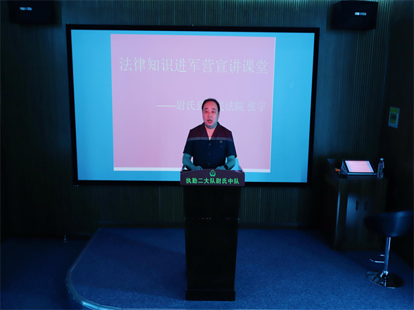 張宇就學法、尊法、守法、用法幾方面深入講解了法律對于國家、社會以及自身的重要性。從大來說,法律關(guān)乎國家安定和發(fā)展。從小來說,法律貫穿我們每個人的一生,尤其對于軍人這樣一個特殊群體,了解、遵守相關(guān)法律,學會用法律維護自身權(quán)益尤為重要。張宇以案說法,以一些涉及軍人的案件為例,講解了軍人要如何運用法律武器保護自己,同時針對一些涉及軍人的特殊問題,從法律層面上為武警官兵們解憂、解惑,進一步強化武警官兵們的法律意識。