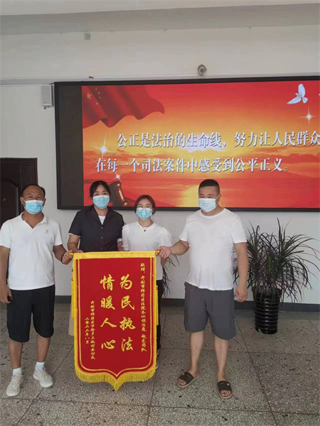 中新河南網8月15日電:8月8日上午,申請執(zhí)行人梁某的兒子將一面寫有“為民執(zhí)法、情暖人心”的錦旗送到開封市祥符區(qū)法院執(zhí)行局趙龍執(zhí)行團隊執(zhí)行干警潘華俊手中,感激之情溢于言表。