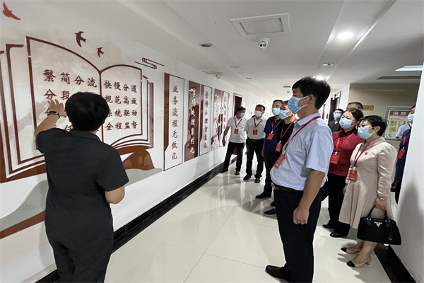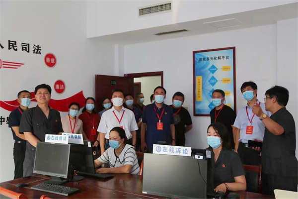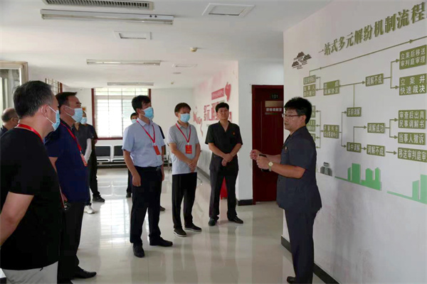 周洪全一行實地查看了矛盾糾紛多元化解中心、在線多元化解平臺、執(zhí)行集中接待中心、執(zhí)行卷宗管理中心等場所,詳細了解法院矛盾糾紛多元化解、執(zhí)行工作機制、文化建設(shè)等情況。