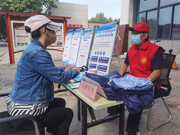 活動中,普法志愿者、村(居)法律顧問專門設置宣傳橫幅和普法展板,為群眾發(fā)放《中華人民共和國民法典》《中華人民共和國法律援助法》《河南省矛盾糾紛多元預防化解條例》等法律讀本以及普法手提袋、圍裙等法治宣傳品,并結(jié)合典型案例,深入淺出地講解了與日常生活息息相關的法律知識,引導大家通過法律途徑合理表達訴求,依法維護自身合法權益。