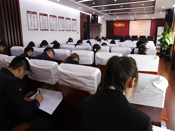 以考促學(xué),進一步增強了干警學(xué)習(xí)國家安全法律法規(guī)知識的自覺性,深刻認(rèn)識國家安全教育活動的重要性,堅定了廣大干警更好的立足審判職能,為堅決維護國家安全作出積極貢獻,共同筑牢國家安全防線的決心。