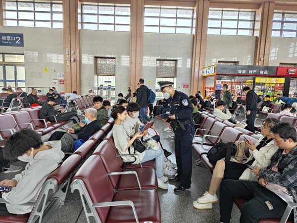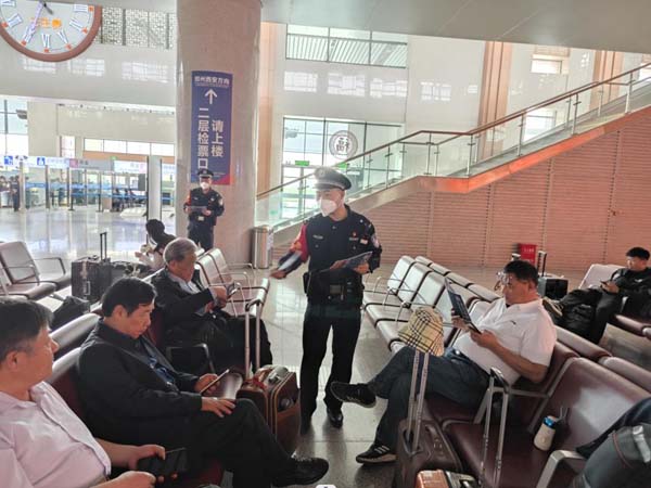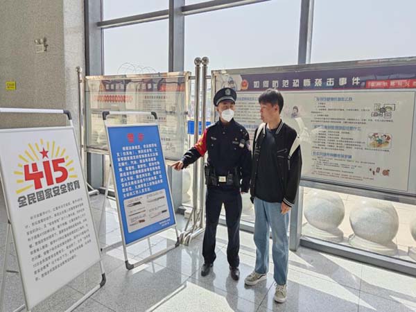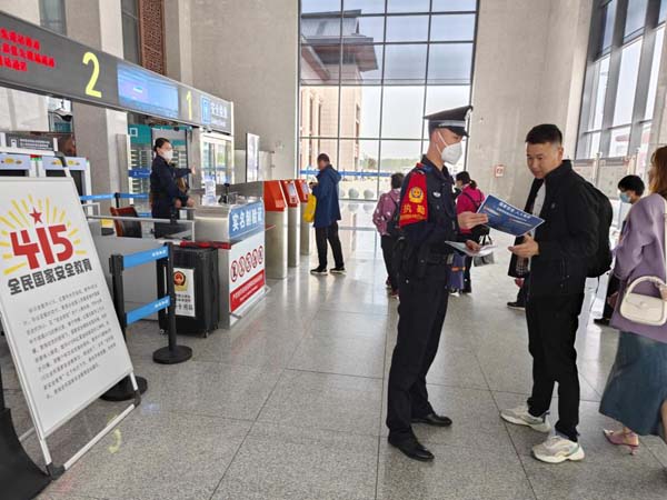 中新河南網(wǎng)4月16日電:在第八個(gè)“全民國家安全教育日”來臨之際,鄭州鐵路公安處開封北站派出所全面貫徹落實(shí)習(xí)近平總書記關(guān)于加強(qiáng)國家安全教育重要指示要求和關(guān)于總體國家安全觀重要論述,緊緊圍繞“貫徹總體國家安全觀,增強(qiáng)全民國家安全意識(shí)和素養(yǎng),夯實(shí)以新安全格局保障新發(fā)展格局的社會(huì)基礎(chǔ)”這一主題,組織民警深入站區(qū)采取多種形式宣傳國家安全知識(shí),普及總體國家安全觀,引導(dǎo)廣大旅客增強(qiáng)法律意識(shí)、安全意識(shí)和責(zé)任意識(shí)。