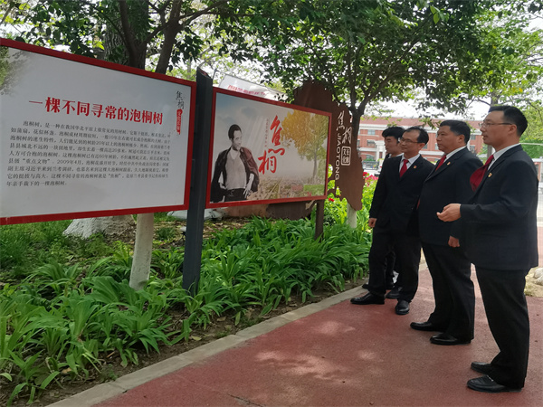在“焦桐”樹下,大家整齊肅立,舉起右拳,在黨組成員、政治部主任甘延享的領(lǐng)誓下,重溫入黨詩詞,錚錚誓言有力詮釋著祥符法院干警在新時代、新任務(wù)下,忠誠擔當、恪盡職守、踔厲奮發(fā)的初心,堅定了我心向黨,忠誠為黨的決心。在焦桐廣場焦裕祿同志親手種下的泡桐樹前,同志們追憶焦書記當年治理風沙等蘭考“三害”的事跡,黨員們仰望高大威嚴的“焦桐”,共同追憶焦裕祿同志的臨終遺愿,感悟焦裕祿同志一生拼搏奉獻精神。