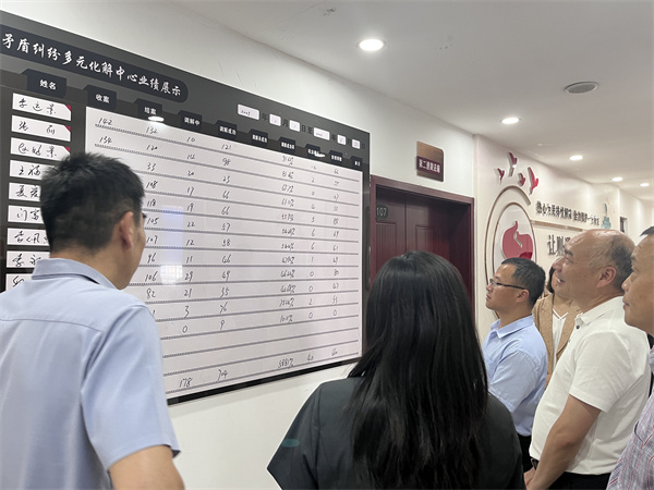 在訴前文化長廊,濃厚的調(diào)解氛圍使調(diào)研組一行駐足觀看,并對人民調(diào)解員業(yè)績展示板上的調(diào)解成績給予充分肯定。胡水明指出,要充分發(fā)揮人民調(diào)解“第一道防線”作用,進一步為人民群眾提供高效、便捷、低成本的解紛服務,助推訴源治理工作成效。