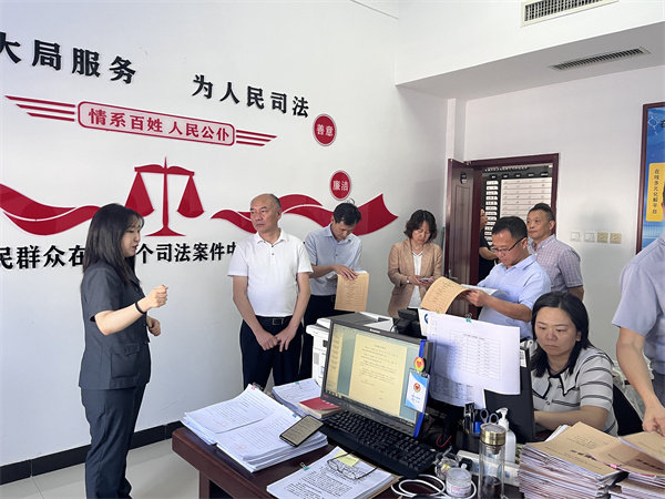 中新河南網(wǎng)6月10日電:6月9日下午,江西省司法廳黨組成員、政治部主任胡水明一行到開封市龍亭區(qū)人民法院調(diào)研指導人民調(diào)解工作,河南省司法廳二級巡視員黃興士、基層工作指導處二級調(diào)研員張旭武,開封市司法局黨委委員、副局長喬長永、基層工作指導科科長韓琦、龍亭區(qū)司法局長尹艷麗、龍亭區(qū)法院黨組成員代喬鵬、訴訟服務中心主任梁成勛陪同調(diào)研,多元解紛團隊王悅作講解。