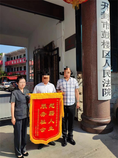 中新河南網(wǎng)6月19日電:近日,一起再審民間借貸糾紛案件的原告公司領(lǐng)導(dǎo)專程來(lái)到開封市鼓樓區(qū)人民法院,為王靜法官送來(lái)了一面錦旗以表感謝。錦旗上“慰藉人生 服務(wù)社會(huì)”八個(gè)燙金的大字在陽(yáng)光下熠熠生輝。
