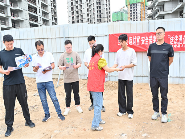 中新河南網(wǎng)6月30日電:6月29日上午,開封市蘭考縣法院干警走進建筑工地,開展以“勞動創(chuàng)造財富 安全帶來幸福”為主題的法治宣講活動。