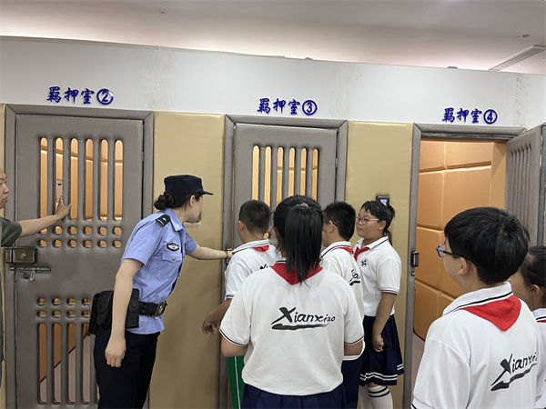在羈押室,法警秦潔通過對羈押室布局、設(shè)備配置、功能作用的介紹,對大家進(jìn)行了一次生動又深刻的警示教育。
