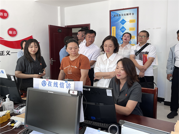 吳海燕一行先后來到矛盾糾紛多元化解中心、宋付振調(diào)解工作室、李大姐調(diào)解工作室、線上調(diào)解辦公室等場所,通過實(shí)地查看、聽取介紹、現(xiàn)場詢問等方式詳細(xì)了解了龍亭區(qū)法院矛盾糾紛多元化解工作的運(yùn)行模式及經(jīng)驗(yàn)做法,并與11名專職人民調(diào)解員進(jìn)行了深入交流。