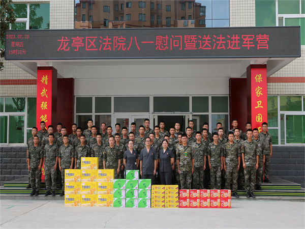 金興武隊(duì)長對龍亭區(qū)法院的慰問和關(guān)心表示感謝,并將一如既往地支持與配合法院工作,不斷提高官兵法治意識,弘揚(yáng)法律精神,繼續(xù)發(fā)揚(yáng)擁政愛民的優(yōu)良傳統(tǒng),共同譜寫雙擁共建新篇章。