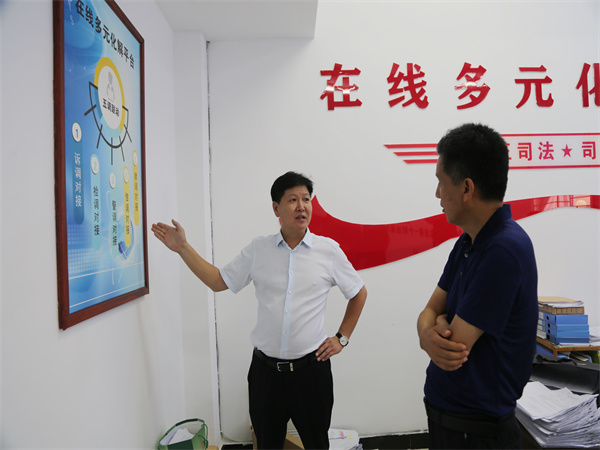 楊洪院長(zhǎng)先后參觀了開(kāi)封市龍亭區(qū)法院信訪接待室、矛盾糾紛多元化解中心、宋付振調(diào)解工作室、在線多元解紛辦公室、執(zhí)行指揮中心等場(chǎng)所,詳細(xì)了解了龍亭區(qū)法院在創(chuàng)建“楓橋式人民法庭”和執(zhí)行權(quán)運(yùn)行機(jī)制改革方面取得的成果。