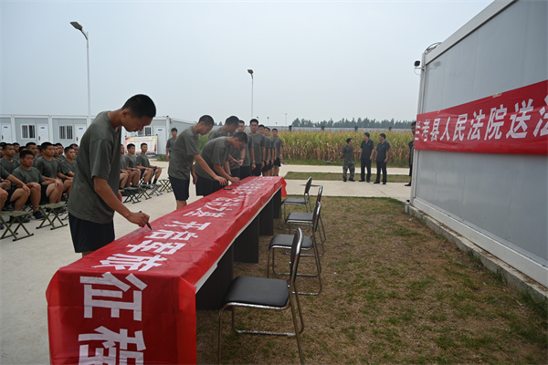中新河南網(wǎng)9月12日電:為深入學(xué)習(xí)宣傳貫徹黨的二十大精神,強化新兵法治觀念,9月11日下午,蘭考縣法院組織法官走進(jìn)縣武裝部預(yù)定新兵訓(xùn)練基地,開展“送法助征兵”活動,為即將入伍的新兵們送上役前法治教育“第一課”。
