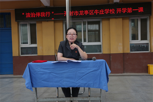 綜合審判庭庭長萬姍姍到牛莊學校以“法律伴我行,開學第一課”為主題為學生們進行普法講座。