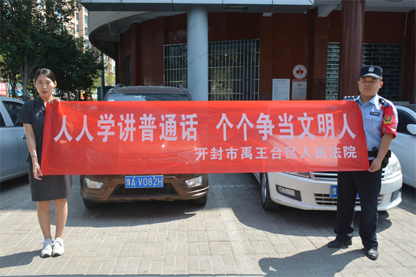 推普周期間,禹王臺(tái)法院積極營(yíng)造宣傳氛圍,在立案庭(訴訟服務(wù)中心)設(shè)置“請(qǐng)講普通話”提示牌,時(shí)刻提醒大家要加強(qiáng)文字規(guī)范和普通話日常應(yīng)用,暢通溝通交流,并倡導(dǎo)全院干警在開(kāi)庭、辦公、辦案過(guò)程中養(yǎng)成使用普通話的習(xí)慣。