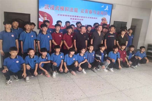 河南省開(kāi)封市祥符區(qū)人民法院審判委員會(huì)專職委員、朱仙鎮(zhèn)人民法庭負(fù)責(zé)人朱榮寶同志首先對(duì)同學(xué)的到來(lái)表示歡迎,并鼓勵(lì)同學(xué)們?cè)诤煤脤W(xué)習(xí)之余多多了解法律知識(shí),提高自我保護(hù)能力。法庭干警以案說(shuō)法,通過(guò)校園暴力和欺凌、初中生為打游戲大額充值等生動(dòng)的真實(shí)案例為同學(xué)們上了一堂法治宣傳課,教導(dǎo)學(xué)生們要增強(qiáng)法律意識(shí),做尊法守法用法的好少年。隨后,法庭干警帶領(lǐng)同學(xué)們參觀黨建室、立案室、執(zhí)行室,詳細(xì)為同學(xué)們介紹了法院立案、調(diào)解、審判、執(zhí)行等各環(huán)節(jié)的工作,增強(qiáng)學(xué)生們對(duì)法院的了解。最后,同學(xué)們紛紛變身“小法官”,切身體驗(yàn)庭審現(xiàn)場(chǎng),身披法袍、手持法槌,感受法庭的嚴(yán)謹(jǐn)莊重以及法律的神圣威嚴(yán)。