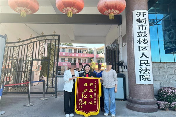 中新河南網(wǎng)10月24日電:近日,開封市鼓樓區(qū)人民法院民事審判庭倫振楠審判團(tuán)隊(duì)充分發(fā)揮能動(dòng)司法,主動(dòng)融入基層社會治理,堅(jiān)持“辦理一案,治理一片”的理念,通過單起案件成功調(diào)解一批物業(yè)合同糾紛,不僅實(shí)質(zhì)性化解物業(yè)公司和業(yè)主的矛盾,也持續(xù)為優(yōu)化法治化營商環(huán)境助力。當(dāng)事人為表示感謝,特將一面寫有“捍衛(wèi)正義 維護(hù)公平”的錦旗送到法官手中,取得了良好的法律效果和社會效果。