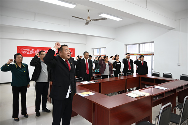 “我志愿加入中國共產(chǎn)黨,擁護黨的綱領,遵守黨的章程,履行黨員義務……”在河南省開封市祥符區(qū)人民法院機關支部書記李建華的領誓下,黨員干警同社區(qū)黨員干部面對黨旗,高舉右手,莊嚴宣誓。院黨組成員、政治部主任趙麗為大家誦讀《習近平新時代中國特色社會主義思想專題摘編》選段,并為過政治生日的黨員贈送政治生日賀卡并送上寄語。通過開展主題黨日聯(lián)過,進一步加強支部聯(lián)動性,實現(xiàn)與社區(qū)黨組織資源共享,共建互補,共同提升黨建工作水平。