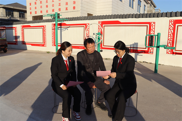 第一黨支部黨員代表與社區(qū)群眾坐在一起,向群眾們告知要學(xué)法用法,指導(dǎo)群眾們?cè)诎l(fā)生糾紛后如何理性、合法地表達(dá)利益訴求,維護(hù)自身合法權(quán)益,讓?xiě)椃ㄈ谶M(jìn)生活,走進(jìn)居民心里。