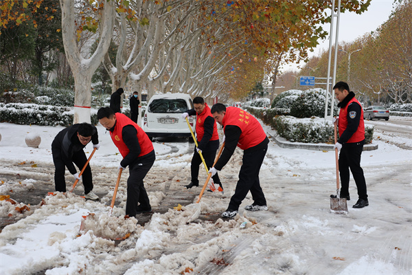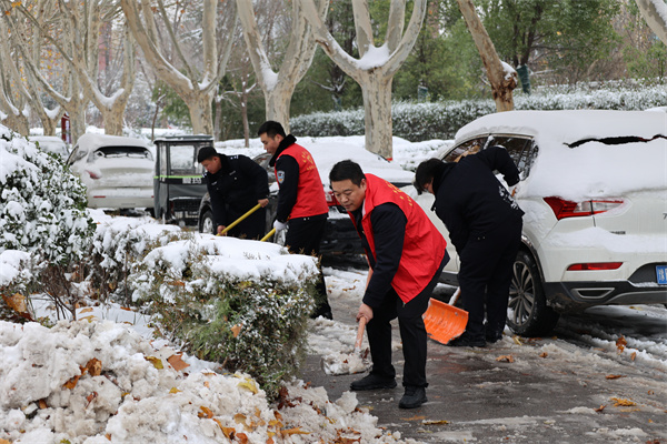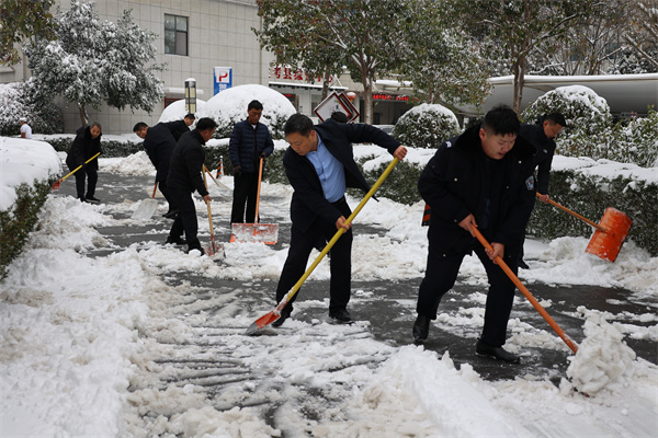 清雪現(xiàn)場,干警們不畏嚴(yán)寒、齊心協(xié)力,拿起鐵锨、雪鏟、掃帚,分工協(xié)作、相互配合,一片熱火朝天的景象。經(jīng)過連續(xù)奮戰(zhàn),不懈努力,法院機關(guān)及周邊道路積雪全部清理完畢,為過往行人和當(dāng)事人打通了安全出行的通道,讓雪后的冬天變得格外溫暖。