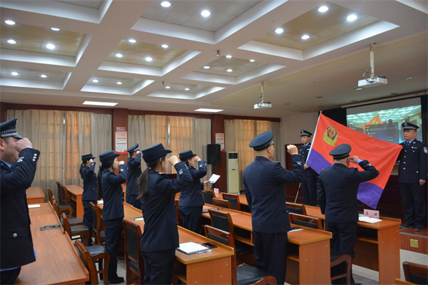 “錚錚誓言,聲聲回響”,省法院慶;顒(dòng)結(jié)束后,該院司法警察大隊(duì)組織了向警旗宣誓活動(dòng),全體司法警察警容嚴(yán)整、精神抖擻,面向警旗,緊握右拳,莊嚴(yán)宣誓:“我志愿成為人民法院司法警察,獻(xiàn)身于崇高的人民司法事業(yè)……。”他們以最洪亮的聲音、最飽滿的熱情,作出“對(duì)黨忠誠(chéng)、服務(wù)人民、執(zhí)法公正、紀(jì)律嚴(yán)明”的莊嚴(yán)承諾,表達(dá)了對(duì)司法警察事業(yè)的無(wú)限忠誠(chéng)與熱愛(ài)。