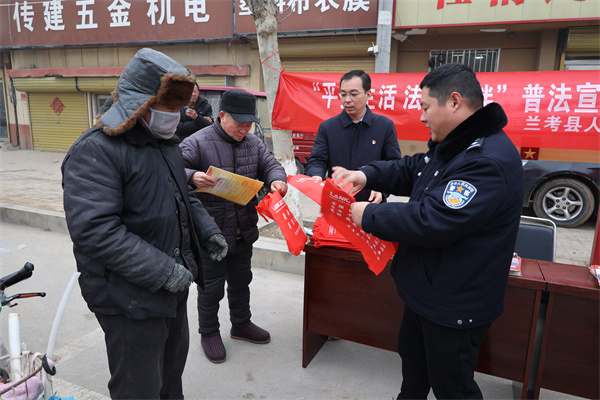 中新河南網(wǎng)1月31日電:人民法庭是為群眾排憂(yōu)解難、定紛止?fàn)幍那把仃嚨,是參與社會(huì)綜合治理、服務(wù)全面推進(jìn)鄉(xiāng)村振興戰(zhàn)略的重要抓手。臨近春節(jié),為深化平安蘭考建設(shè),切實(shí)讓法治理念走進(jìn)基層。1月31日,蘭考縣法院考城法庭在考城鎮(zhèn)人員密集的社情民意中心附近開(kāi)展了“平安生活 法治相伴”戶(hù)外宣傳活動(dòng)。