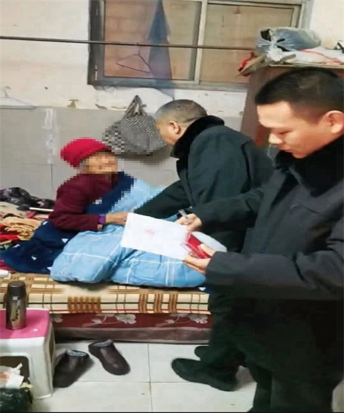 在法庭收到執(zhí)行錢款后,執(zhí)行人員對被執(zhí)行人的家屬進行了耐心的說服教育。這時,已經(jīng)是深夜,蔡莊法庭庭長曹磊帶領(lǐng)執(zhí)行人員踏著厚厚的積雪,來到了老太太的家中。他們細(xì)心地詢問了老太太的生活情況,得知老太太還沒有吃飯,身上只蓋著一張薄薄的被子,而外面則是冰天雪地,屋里沒有任何取暖設(shè)備。他們趕忙讓老太太的家人做飯,給老太太加了一床厚被子,把案件款交到了老太太的手中。