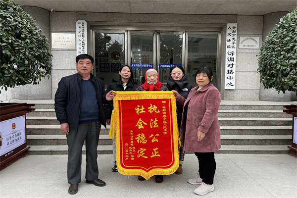 2月19日,原告來(lái)到龍亭區(qū)法院為多元解紛團(tuán)隊(duì)送上錦旗,她連聲說(shuō)著謝謝,表示對(duì)調(diào)解結(jié)果非常滿(mǎn)意,電表風(fēng)波已經(jīng)結(jié)束,鄰里之間也都像往常一樣相處的十分愉快。錦旗上寫(xiě)道:“執(zhí)法公正,社會(huì)穩(wěn)定”。(王悅)