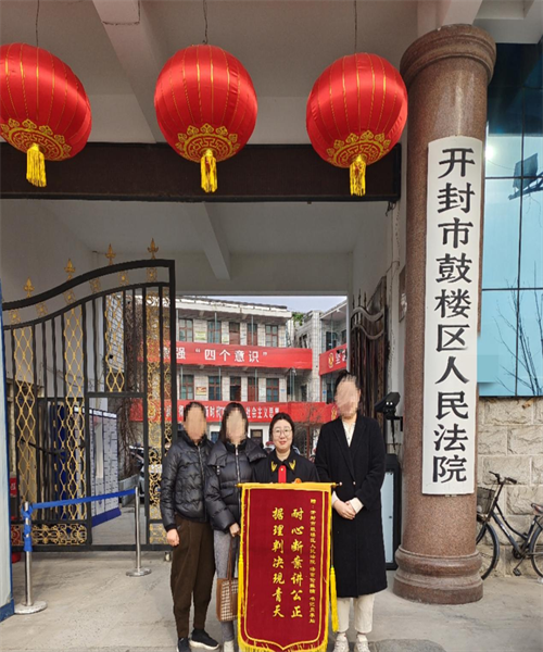 中新河南網(wǎng)3月14日電:近日,開封市鼓樓區(qū)人民法院倫振楠審判團(tuán)隊(duì)以專業(yè)、細(xì)致的態(tài)度,歷經(jīng)數(shù)小時(shí)成功調(diào)解一起涉及多方當(dāng)事人的復(fù)雜繼承糾紛案件。當(dāng)事人為表感謝,特將一面印有“耐心斷案講公正 據(jù)理判決現(xiàn)青天”的錦旗送到法院。