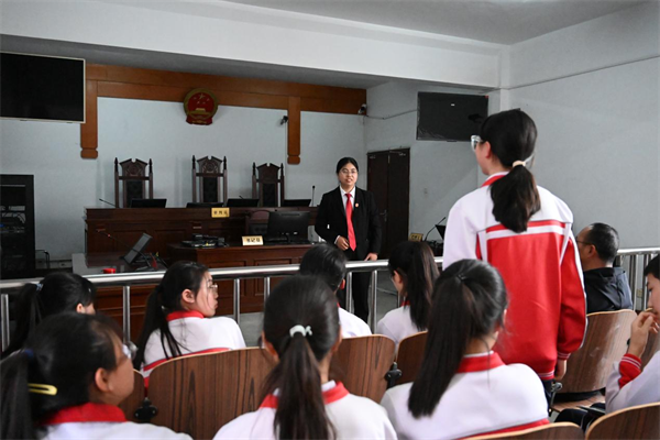 中新河南網(wǎng)4月12日電:4月11日,開封市集英中學(xué)的同學(xué)們走進祥符區(qū)人民法院參加公眾開放日主題活動。民事審判法官王艷茹、刑事審判法官郭進婷,從各自的工作領(lǐng)域出發(fā),共同聚焦未成年人合法權(quán)益保護,讓同學(xué)們在審問與慎思中真正知法、懂法、用法。