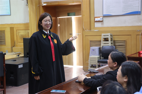 在法院干警的講解下,婦聯(lián)同志們詳細了解了立案訴訟流程、訴前調(diào)解工作及羈押室、警用裝備庫等,沉浸式感受法院的工作日常及工作氛圍。隨后來到一號法庭,共同旁聽一起關(guān)于撫養(yǎng)費糾紛的民事案件庭審。審判法官侯丹丹嚴格把控庭審程序,耐心安撫雙方當(dāng)事人情緒,有條不紊的開展法庭調(diào)查、舉證質(zhì)證、法庭辯論等庭審環(huán)節(jié)。庭審結(jié)束后,侯丹丹法官向婦聯(lián)同志們講解了常用的調(diào)解方法和技巧,切實提升了她們解決矛盾糾紛問題的能力,為今后以更強的法治思維參與家事糾紛的訴源治理工作奠定了堅實基礎(chǔ)。