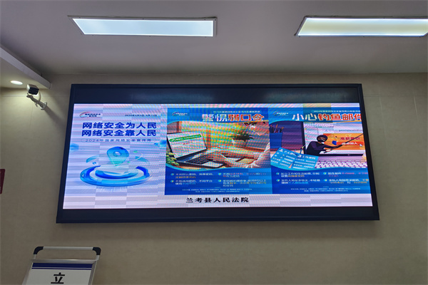 三是營(yíng)造氛圍。利用官方網(wǎng)站、官方微博、官方微信等多媒體形式,積極推送網(wǎng)絡(luò)安全類信息,并運(yùn)用院內(nèi)顯示屏,不間斷播放網(wǎng)絡(luò)安全宣傳教育圖畫及標(biāo)語(yǔ),提高前來(lái)法院辦事的群眾網(wǎng)絡(luò)安全意識(shí)。