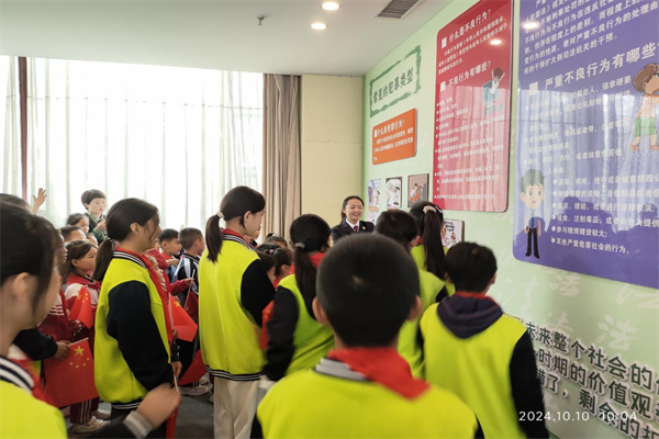 祥符法院的法官不僅審判案件,還懂厚重燦爛的河南歷史文化。在啟封故園,法官給孩子們講解了朱仙鎮(zhèn)的歷史,啟封故園的由來(lái),以及厚重的河南歷史文化。來(lái)到模擬法庭,孩子們了解到了司法禮儀,知道了庭審的組成,學(xué)習(xí)了法徽、法槌、法官袍的知識(shí)。在“陽(yáng)光樹(shù)”法治教育基地,孩子們通過(guò)漫畫(huà)、短片和文字不僅學(xué)到了《憲法》、《民法典》、《未成年人保護(hù)法》的知識(shí),還懂得了如何拿起法律的武器保護(hù)好自己。