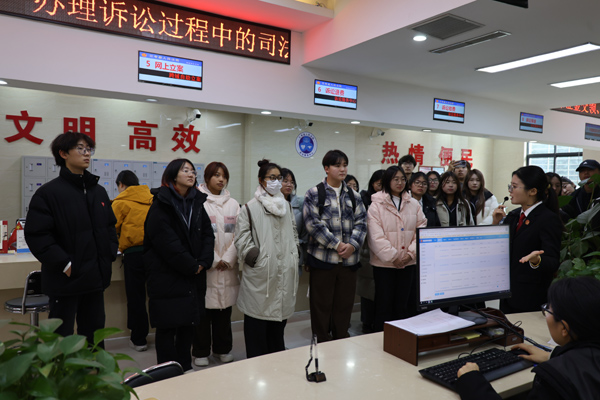 活動(dòng)中,同學(xué)們參觀了訴訟服務(wù)中心、羈押室、武器裝備庫、法警體能訓(xùn)練中心、圖書館等場所,了解立案、審判、執(zhí)行工作的相關(guān)流程,同時(shí)還旁聽了一起刑事案件的庭審,“零距離”感受司法審判工作,“沉浸式”體驗(yàn)庭審現(xiàn)場。