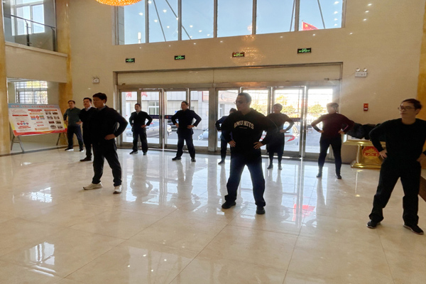 練習(xí)中,老師先帶領(lǐng)干警做熱身運(yùn)動(dòng),對(duì)頭頸、軀干、四肢、腰腹全身進(jìn)行有效鍛煉,隨后從手法、身法到步法,對(duì)八段錦口訣進(jìn)行分段講解演示,干警們認(rèn)真學(xué)習(xí),互相交流、反復(fù)切磋,初步掌握了動(dòng)作要領(lǐng),領(lǐng)略了傳統(tǒng)養(yǎng)生功法的獨(dú)特魅力。