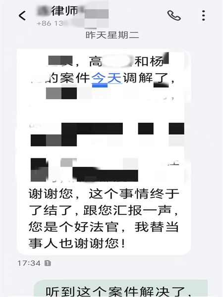 案件結束后,原告的代理律師專門向行政庭干警發(fā)來感謝短信,對他們在案件處理過程中的專業(yè)精神和敬業(yè)態(tài)度給予高度評價,稱贊其是真正為人民群眾排憂解難的好法官。