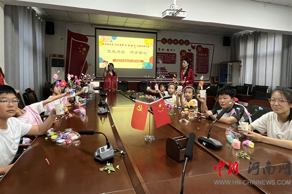 中新河南網7月28日電:為豐富轄區(qū)青少年的暑期生活,培育踐行主流價值,培養(yǎng)青少年勤儉樸素的生活習慣,7月28日,開封市示范區(qū)杏花營農場新時代文明實踐所組織大學生志愿者開展2025年開封示范區(qū)“多彩假期 ‘藝’路‘童’行”文明實踐活動。本次活動以“變廢為寶 妙手童心”為主題,通過使用一次性紙杯、樹枝、超輕黏土等制作DIY花束,激發(fā)孩子們在手工活動中的創(chuàng)造力、想象力、動手能力。