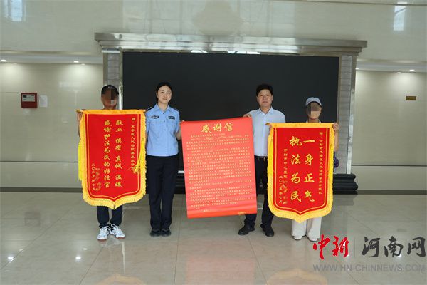 中新河南網(wǎng)8月22日電:8月20日,當(dāng)事人王某懷著無(wú)比感激之情,將錦旗和一封感謝信贈(zèng)送給開(kāi)封市龍亭區(qū)人民法院黨組書(shū)記、院長(zhǎng)宗振宇和執(zhí)行干警吳晶晶,用質(zhì)樸的方式表達(dá)真摯的感激之情。