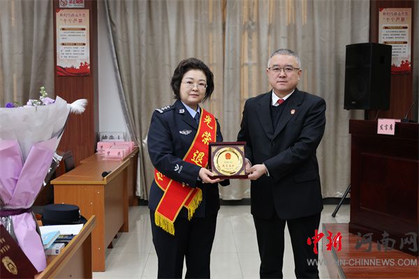 中新河南網(wǎng)1月9日電:有一種堅(jiān)守,叫初心如磐;有一種傳承,叫薪火相繼。在第六個“中國人民警察節(jié)”到來之際,為熱烈慶祝節(jié)日,增強(qiáng)司法警察職業(yè)榮譽(yù)感與歸屬感,同時致敬深耕司法警察事業(yè)三十余載的前輩,2026年1月9日上午,開封市禹王臺區(qū)人民法院舉辦“警徽映初心 薪火永相傳”主題活動,同步舉行李九紅同志榮譽(yù)退休儀式。院領(lǐng)導(dǎo)及全體司法警察齊聚一堂,共同見證榮光時刻,共話使命傳承,活動取得圓滿成功。