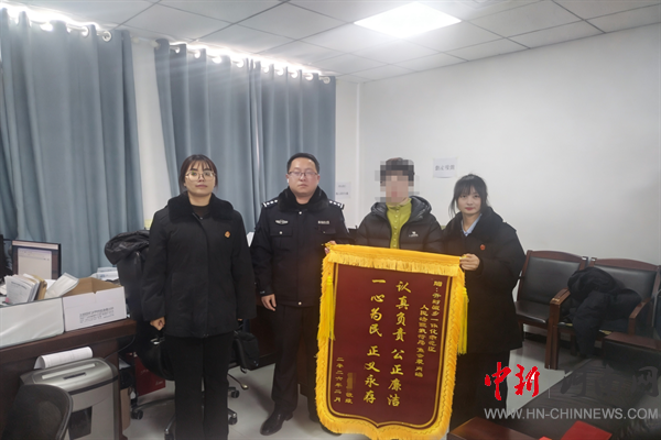 中新河南網(wǎng)3月6日電:近日,被執(zhí)行人谷某某將一面錦旗送到開封市示范區(qū)人民法院焦會蒙團隊手中。申請人致謝常有,被執(zhí)行人送旗罕見。這面特殊的錦旗背后,究竟藏著怎樣的執(zhí)行故事?