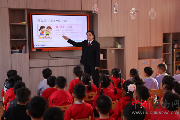 中新河南網(wǎng)4月2日電:春意盎然播種希望,法治春風(fēng)浸潤課堂。為深入推進(jìn)青少年法治教育工作,切實(shí)筑牢校園安全法治防線,用心守護(hù)未成年人健康成長,近日,開封市鼓樓區(qū)人民法院組織干警分赴全區(qū)各對(duì)接中小學(xué)及幼兒園,開展“法治進(jìn)校園”系列專題普法宣傳活動(dòng),針對(duì)不同年齡段未成年人的認(rèn)知特點(diǎn),量身定制普法內(nèi)容,以司法力量為孩子們的成長之路保駕護(hù)航。
