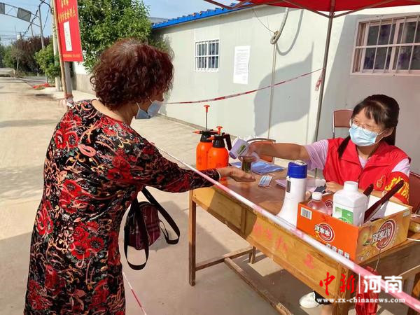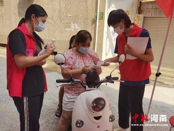 您好!請(qǐng)戴好口罩,保持一米線的距離,來(lái)這里測(cè)量體溫。”8月9日上午,在溫縣番田鎮(zhèn)東留石村疫情防控檢測(cè)點(diǎn),身穿紅馬甲的大學(xué)生志愿者張兆霖和其他2名志愿者正在給來(lái)往人員做登記。