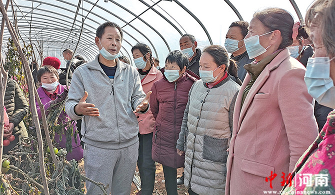 圖① 農(nóng)閑時(shí)節(jié),高素質(zhì)農(nóng)民培訓(xùn)班辦到了田間地頭,濟(jì)源示范區(qū)王屋鎮(zhèn)羅莊村的群眾在向老師請(qǐng)教、學(xué)習(xí)番茄種植技術(shù)。