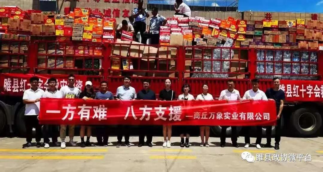 發(fā)揮自身優(yōu)勢,積極捐款捐物?h政協(xié)委員、縣產(chǎn)業(yè)集聚區(qū)管委會副主任肖浩蕩積極組織愛心企業(yè)捐贈運(yùn)動鞋1萬余雙,總價(jià)值200余萬元,并捐贈現(xiàn)金10萬元。縣政協(xié)常委褚亞龍積極組織太極會館學(xué)員向河南省慈善總會捐贈資金15500元,支援災(zāi)區(qū)。縣政協(xié)常委、縣食品流通行業(yè)商會會長周繼仁組織縣食品流通行業(yè)商會捐助救災(zāi)物資25萬元,通過睢縣慈善總會馳援新鄉(xiāng)。縣政協(xié)委員、商丘萬象實(shí)業(yè)公司總經(jīng)理韓紅波組織捐贈物資16萬元,馳援新鄭。縣政協(xié)委員、河南量能藥業(yè)有限公司負(fù)責(zé)人張斌積極籌集50臺水泵、2000條棉等防汛救災(zāi)物資,總價(jià)值13.6萬元,并親自送往新鄉(xiāng)輝縣市?h政協(xié)委員、縣建筑裝飾協(xié)會會長江楓組織協(xié)會捐贈3萬余元救援物資?h政協(xié)委員、縣文化傳媒行業(yè)商會會長蘇紅偉組織帶領(lǐng)部分會員赴新鄉(xiāng)衛(wèi)輝下園村,向該村捐贈1萬多元的抗洪救災(zāi)物資。同時(shí),林光輝、谷森森、靳展、張衍坤、劉其軍、杜綠、孟凱、蔣成亮等政協(xié)委員,以不同渠道積極捐款捐物支援災(zāi)區(qū)。