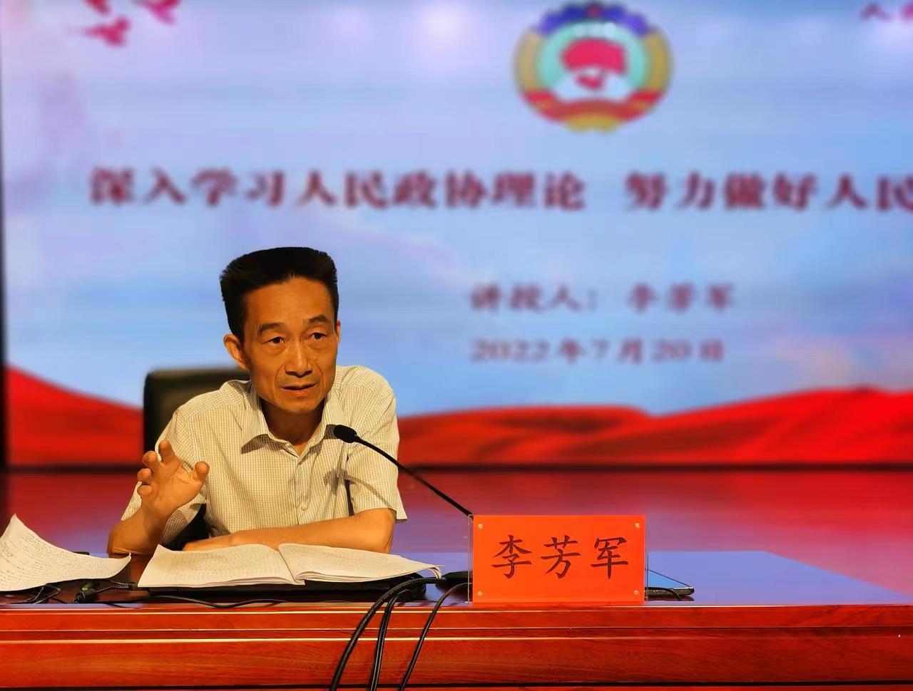 開(kāi)班式上,李芳軍以《深入學(xué)習(xí)人民政協(xié)理論努力做好人民政協(xié)工作》為題,圍繞人民政協(xié)從哪里來(lái)、是什么、干什么、怎么干,系統(tǒng)回顧了人民政協(xié)的光輝歷程,深入闡述了人民政協(xié)的性質(zhì)定位、主要職能、履職實(shí)踐,傳達(dá)學(xué)習(xí)了習(xí)近平總書(shū)記關(guān)于加強(qiáng)和改進(jìn)人民政協(xié)工作的重要思想,詳細(xì)解讀了新時(shí)代人民政協(xié)的新方位新使命。