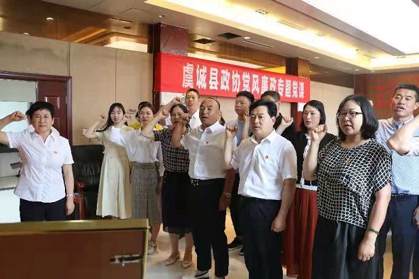 最后,在吳冬梅的帶領下,縣政協(xié)機關全體黨員面對黨旗重溫了入黨誓詞,大家以鏗鏘有力的話語、擲地有聲的承諾,以更加堅定的信念和無畏的勇氣向中國共產黨建黨100周年獻禮。