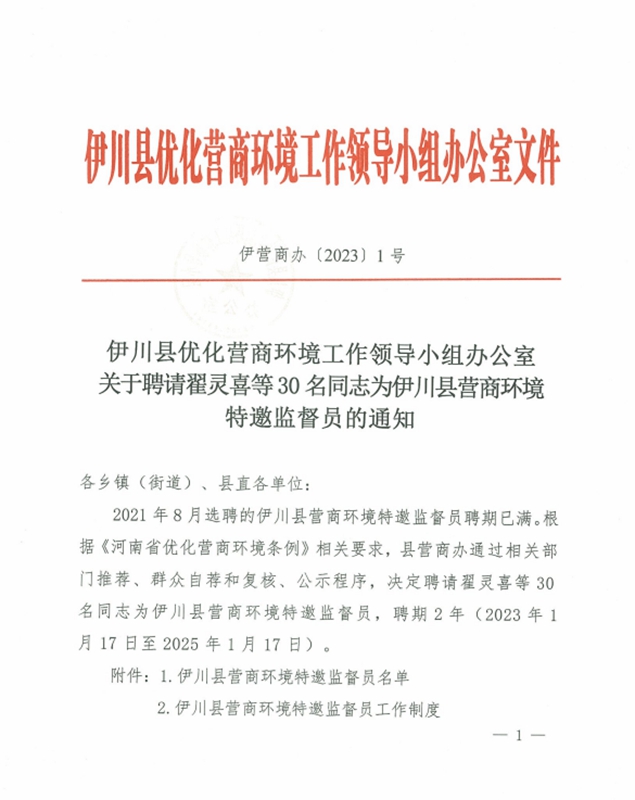伊川縣30名營商環(huán)境特邀監(jiān)督員正式上崗
