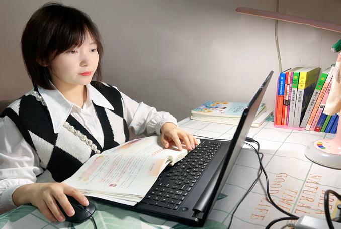 隔著屏幕,顧老師的一天開始了,從早上八點開始在線早讀,布置好任務(wù),和學生們一起開啟滿格晨讀?粗鴮W生們認真讀書的模樣,一切仿佛和在學校學習沒有區(qū)別。線上課堂中,顧老師為調(diào)動學生積極性,每節(jié)課提前十分鐘進入,會以小游戲或者小視頻來調(diào)動學生積極性,學生非常喜歡。課堂中她要求學生認真聽講,邊聽邊批注,為讓每個孩子都參與到學習中,每節(jié)課她都會把連麥互動的學生名字記下來,這樣一周下來班內(nèi)四十五個孩子都能有發(fā)言的機會,在評論界面里也對積極回答問題的學生及時點名表揚,讓學生感受到自己時刻被關(guān)注。