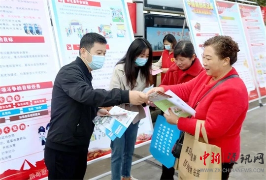工委領(lǐng)導(dǎo)在向過(guò)往市民發(fā)放宣傳資料